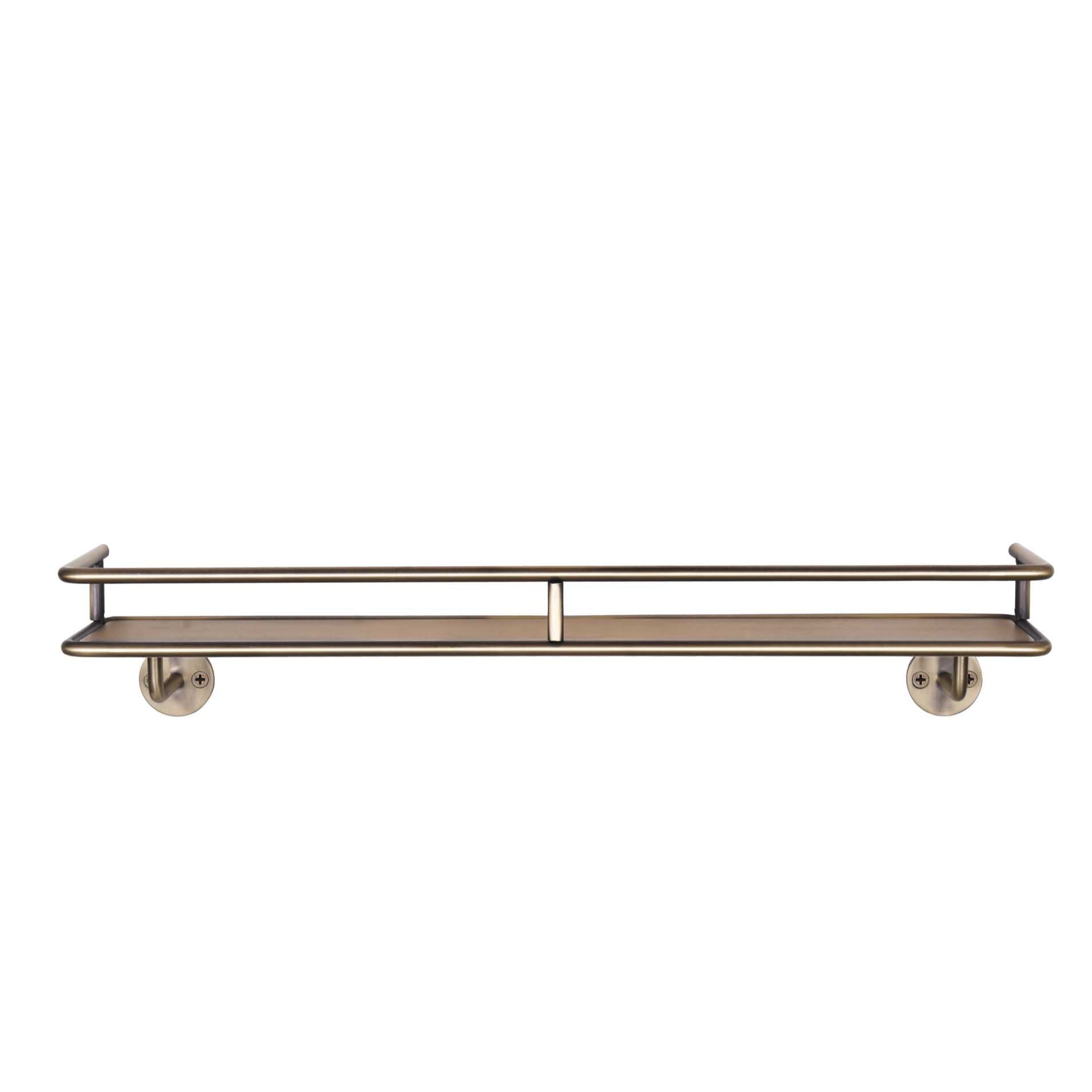 This Antique Brass Shelf creates essential storage in the bathroom or en-suite. Perfect for displaying perfumes, candles and toiletries. Crafted from iron with a timeless brushed brass finish.