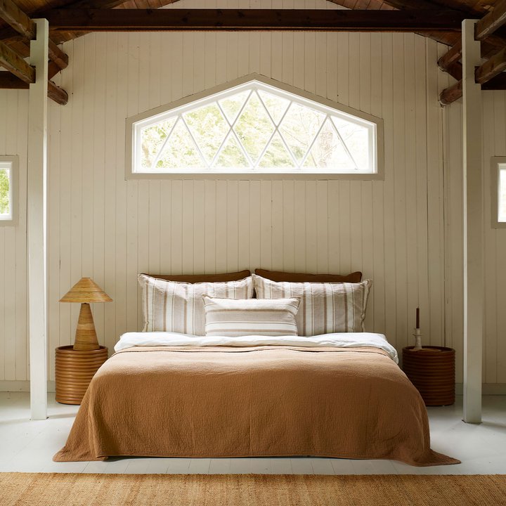 Our large Caramel Waffle Fino Throw is handmade in Portugal from beautifully soft washed cotton on one side and a tactile waffle weave on the other giving you two options in one. Finished with a piped edge, this shade of caramel is super versatile and layers perfectly with neutral tones.