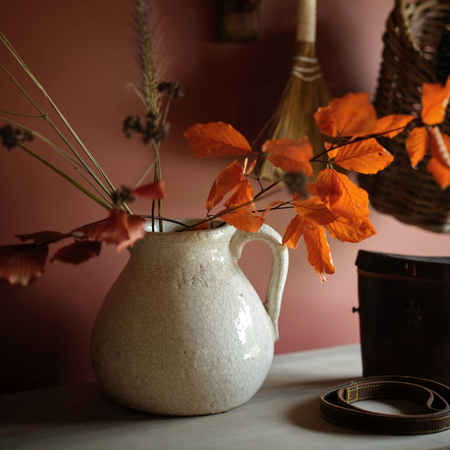 Our Crackle Glaze Jug is a classic design handcrafted from ceramic with an off white crackled finish. Beautiful filled with botanical stems.