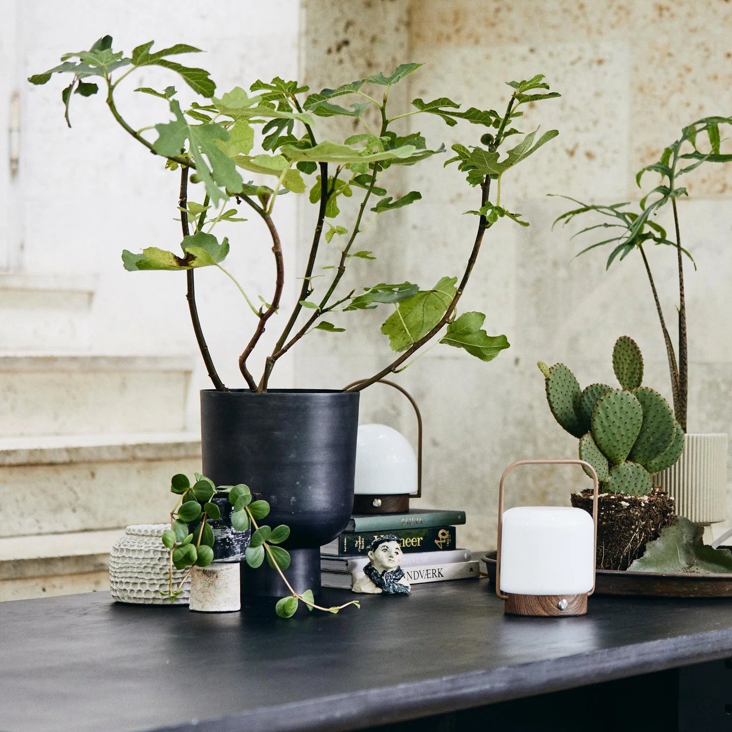Designed in Denmark, the Rechargeable Ria Portable Lamp creates a softly diffused glow wherever you need it, whether it's an al fresco dining spot or a cosy reading corner. The sleek, modern design of milky white fluted glass is complimented by the wood effect base whilst the iron handle makes a practical feature.