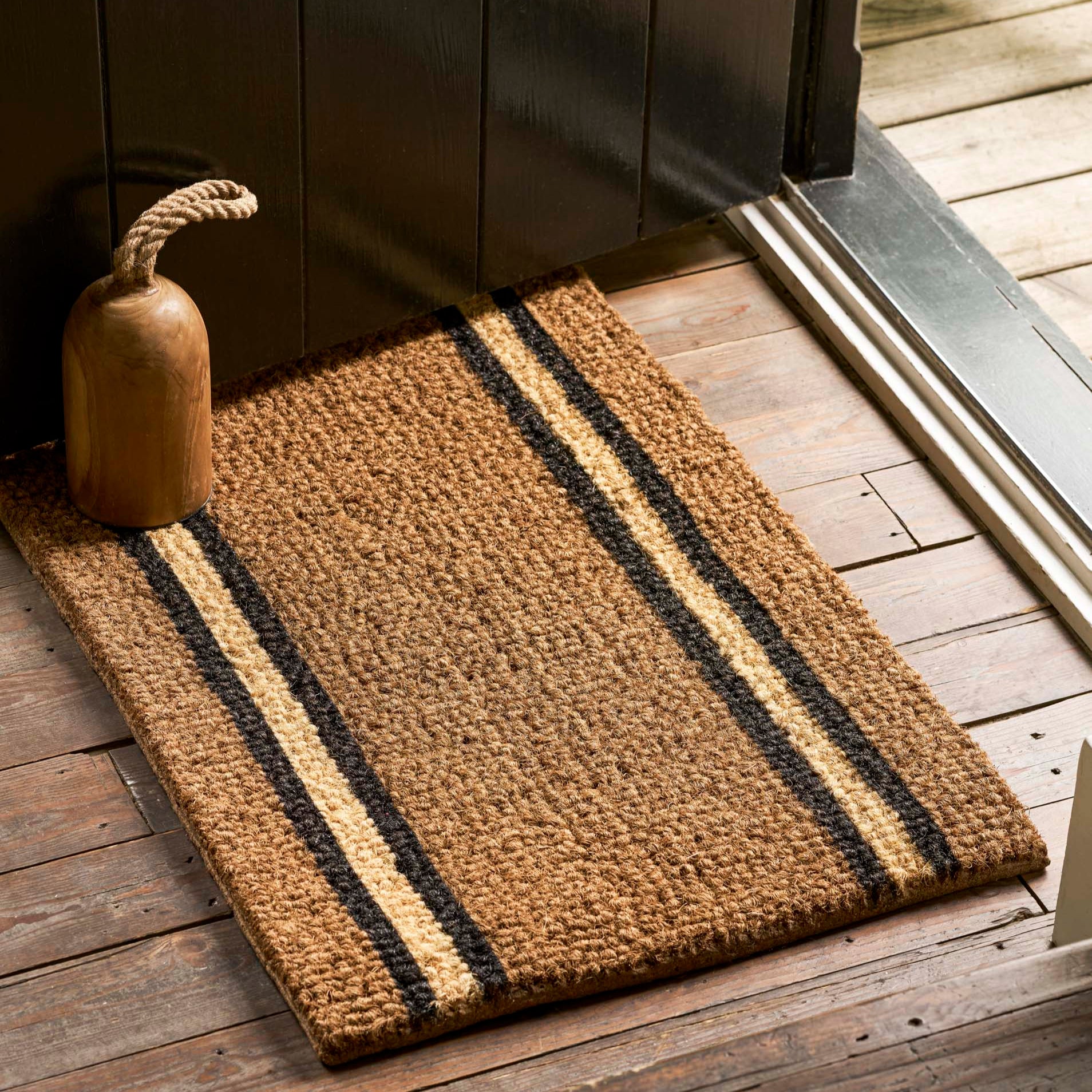 This Striped Coir Doormat is an everyday essential that doesn't compromise on style. Made from tough coconut fibres with a bleached stripe design and a sturdy rubber backing.
